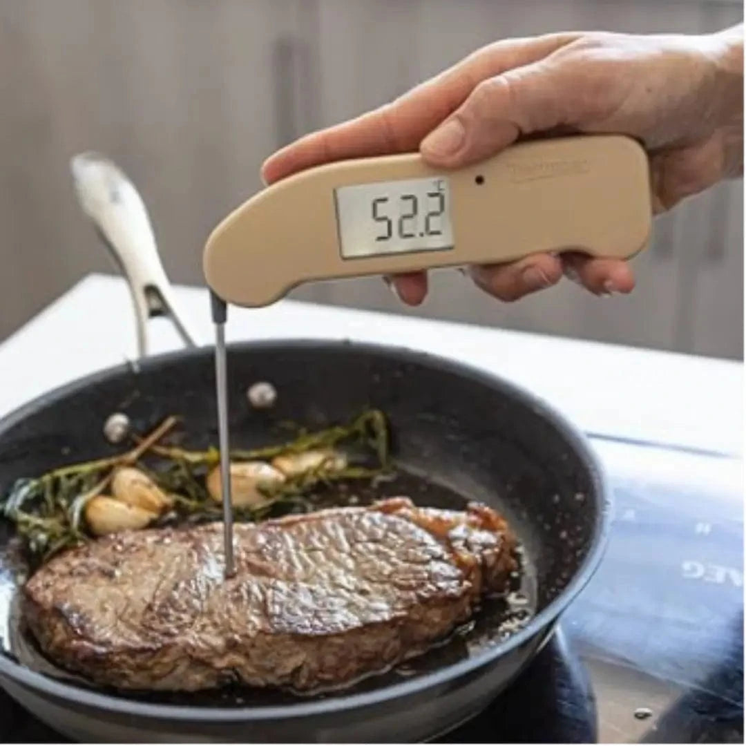 The first meat thermometers we would recommend is the British made Thermapen great to have in your pocket throughout the cook providing instant temperature.
