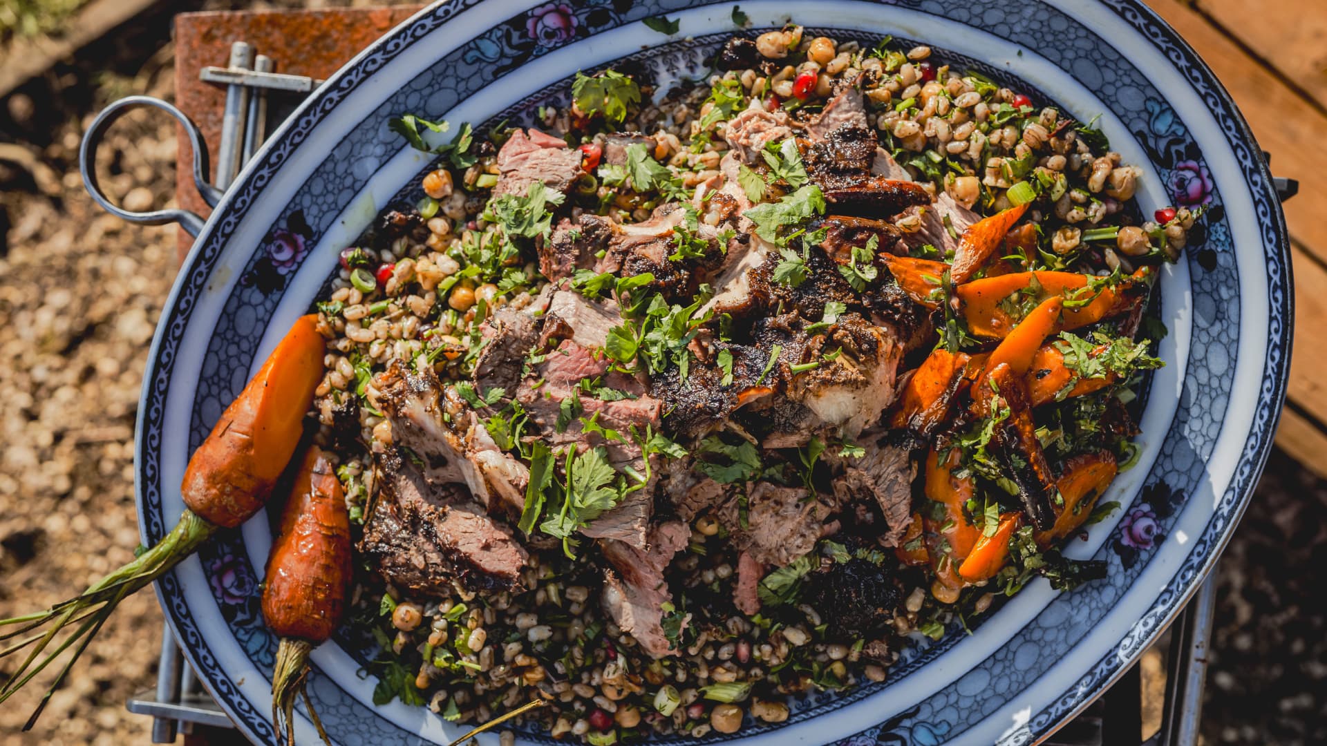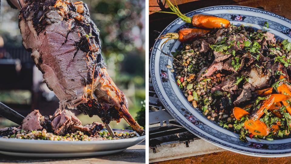 This Easter, why not put a twist on tradition? Inspired by North African flavours and cooked low and slow over beechwood embers, this spiced leg of lamb is a fresh take on the classic Sunday roast. Serve it with roasted carrots, a bed of couscous and pearl barley, and finish with plenty of herbs, toasted nuts and jewel-like pomegranate seeds – a feast fit for new traditions.