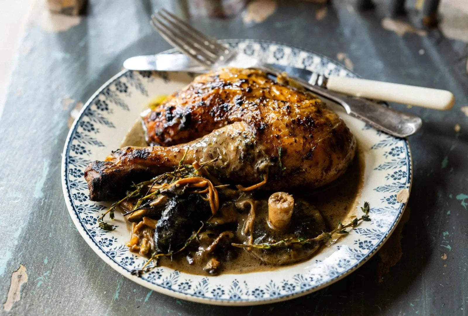 Rotisserie Chicken with Wild Mushroom Gravy, by Pipers Farm Abby Allen