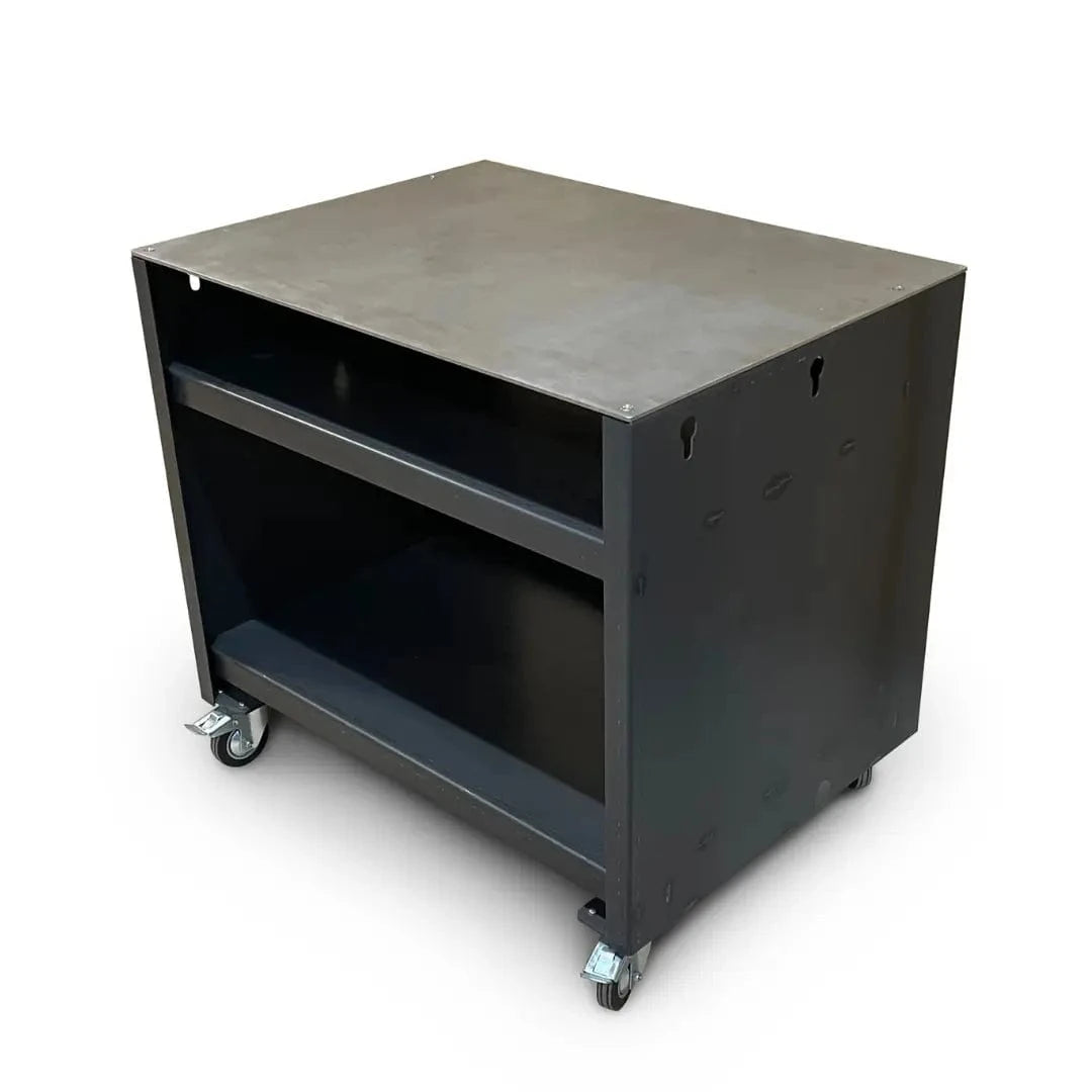 Gunmetal is our standard finish, and is mild steel, dark anthracite in colour. Before it leaves our factory, we oil treat it to protect it. Treat it like a wok, and if any surface rusts appears, rub it down and apply any vegetable oil to protect as and when is needed. If kept under cover, should be trouble free.